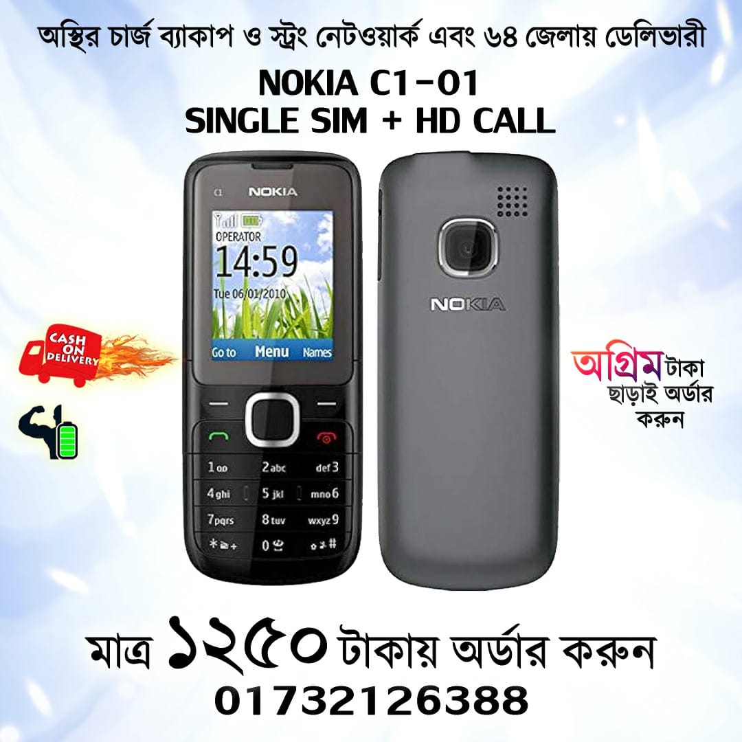 - Nokia C1-01 এ ১ টি সিম কার্ড ও মেমোরী কার্ড (সর্বোচ্চ ১/২ জিবি) সাপোর্টেড।
